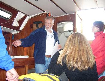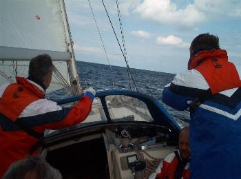 In der Regel ist es so, dass man für bestimmte Sachen der Schiffsführung "irgendwelche Scheine" braucht. (z.B. den Sportbootführerschein See, den Sportküstenschifferschein oder einen Seefunkschein usw). Zum Schein müssen natürlich die entsprechenden Kenntnisse und Fähigkeiten vorhanden sein. Auf See gilt im Notfall natürlich, daß zur Gefahrenabwehr keiner abgehalten werden darf, Hilfe zu holen, nur weil er z.B. keinen Funkschein hat. Aber Vorsicht, der Skipper entscheidet, wann ein Notfall vorliegt. Eine bei schwerer See sehr stampfende und schiefliegende Yacht, überkommende Wellenbrecher und eventuell daraus resultierend etwas Wasser im Schiff sind noch lange kein Notfall, auch wenn bei Ihnen eine gewisse Angst aufkommen sollte. Haben Sie Vertrauen in Ihren Skipper. Ich habe Erfahrung mit viel Sturm und schwerem Seegang, aber wir werden solche Wetterlagen meiden bzw. umgehend einen Schutzhafen anlaufen. Ein kurzes Sommergewitter kann aber auch schon ganz gut zur Sache gehen. Wer neu dabei ist, weiss nicht, ob er Seekrank wird. Also lieber