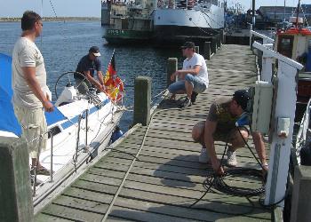 könnte es uns angelastet werden. Dies bedrifft natürlich auch die Segel und da liegt das Problem, dass dies im Hafen bei viel Wind Probleme bringen kann, wenn die Segel ausgerollt werden. Für das Erledigen dieser Aufgaben gibt es Checklisten, die abgearbeitet sein wollen. Alle diese Dinge sind notwendig für die Sicherheit im See-Alltag. Auf See kann man schlecht an den "Seerand" fahren und auf den ADAC warten. Für diese Aufgaben wird sich der Skipper aus der Crew Hilfe nehmen und alles gewissenhaft abarbeiten. Das wird eine gewisse Zeit in Anspruch nehmen. | ||||||||||||||||||||||||||||||||||||||||||||||||||||||||||||||||||||||||||||||||||||||||||||||||||||||