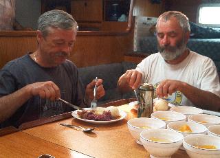 | Sicherlich wird die frische Zubereitung der Speisen an Bord seine Grenzen haben, aber in einer Woche Segeltörn sollte das kein Problem sein. Aus Konserven und Gläsern heraus lässt sich manch leckere Mahlzeit zaubern. Frisches Obst und Gemüse können wir ja in den Häfen zukaufen. | |||||||||||||||||||||||||||||||||||||||||||||||||||||||||||||||||||||||||||||||||||||||||||||||||||||
