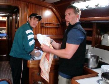Pentry (Küche) Geliebte und ungeliebte Aufgabe.... Haben wir Glück, sind "Kochprofis" an Bord, die sich regelrecht nach dieser Aufgabe drängeln. Da soll man keinen abhalten, nur bedenken Sie, auch diese haben eigentlich Urlaub. Für den Abwasch sollten alle wechselseitig zuständig sein und auch vorher wäre es schön, wenn nicht immer die gleichen in der Pentry arbeiten würden. Es bedarf wohl keiner großen Erklärung, dass Skipper und Co-Skipper/Navigator von diesen Aufgaben befreit sind , weil diese immer andere Pflichten, die der Schiffsführung obliegen, zu erledigen haben. Einer besonderen Einweisung zur Handhabung wird dem Gas-Herd und dem WC zukommen. Dazu an anderer Stelle mehr. | ||||||||||||||||||||||||||||||||||||||||||||||||||||||||||||||||||||||||||||||||||||||||||||||||||||||
