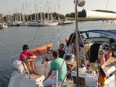 Reiseplanung Der Weg ist das Ziel und nicht irgendein Wunschhafen. Alle schönen Häfen schaffen wir sowieso nicht. Der Wind der frühs die richtige Richtung zum Ziel hat, kann Stunden später widrig von vorn kommen. Auch gibt es beliebte Häfen, die aber ab einer bestimmten Tageszeit so voll sind, dass man keinen Liegeplatz mehr bekommt. Dann bei Schlechtwetter und Dunkelheit zeitraubend weiterfahren oder wo möglich vor dem Hafen vor Anker übernachten zu müssen, ist aus Erfahrung gesehen auch nichts für jeden. Es klingt schon an, auch die "Unpäßlichkeit" auch nur eines Crewmitglieds kann alle Planung durcheinanderbringen. Also finden wir einen guten Mix aus Seetörn und Hafenliegezeit. Die schönen Häfen wollen besichtigt werden, Badestopps unterwegs sind allemal beliebt und das gemeinseime Bordleben mit Kochen und Trinken sowie allerlei Gesprächen sind im romantischen Hafenflair immer ein besonderes Erlebnis | |
