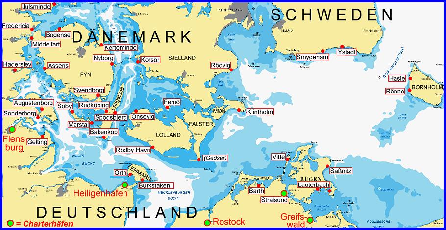 Weitere Niederlassungen lassen so ziemlich alle Ziele in der westlichen und südlichen Ostsee erreichen. + Flensburg + Rostock +Stralsund + Greifswald | |