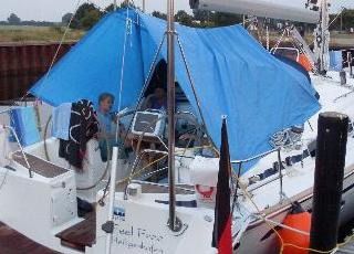 | Unsere Mahlzeiten können wir unter Deck aber auch oben in der Plicht (je nach Wetter) einnehmen. Wenn es doch etwas naß von oben kommt oder die Sonne gar zu sehr brennt , haben wir schnell eine Plane über die Plicht gespannt. So können wir gemütlich auch an der frischen Luft sitzen. | |||||||||||||||||||||||||||||||||||||||||||||||||||||||||||||||||||||||||||||||||||||||||||||||||||||