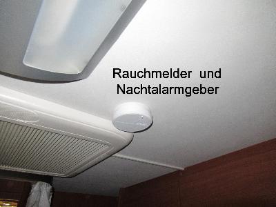 Komplex 4: Sicherheit Alarm-Anlage Zu Einbau der Alarmanlage, Hersteller und Typ werde ich hier natürlich zu meiner eigenen Sicherheit keine weiteren Angaben machen. Die gesamte Anlage hat folgende Eigenschaften: + Überwacht werden alle Türen, Fenster, Dachluken, Klappen, Motorhaube, auch Bruch der Scheiben an Fahrer- und Beifahrertür sowie der Frontscheibe. + Das Fahrzeug ist GPS-Überwacht und die Anlage hat eine SIM-Karte zur Kommunikation des Womo mit dem Handy und natürlich auch umgekehrt. Zusätzlich zur Alarmübermittlung wird der Standort des Fahrzeuges auf einer OSM- oder Google-Karte übermittelt, es kann eine permanente Verfolgung des Womos abgerufen werden, aber auch Batteriespannungen, Erschütterungsalarm usw. werden übermittelt. Weiter wird das Fahrzeug bei Bedarf akustisch überwacht und Gegensprechen ist möglich. Dazu gibt es weitere Zusatzfunktionen, die ich hier nicht weiter darlegen möchte. + Durch mehrere, von einander unabhängige Stromzuführungen ist die Anlage kaum zu deaktivieren. + Die Anlage ist umschaltbar auf Nacht-Alarm, wobei da lediglich als Alarm-Geber der installierte Rauchmelder anspricht. Gaswarner / Rauchmelder |