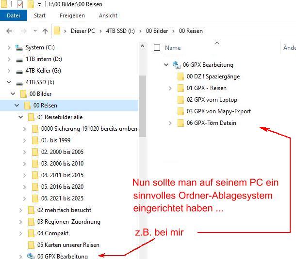 PC zu verwenden, geht es folgendermaßen weiter: Wie bereits erwähnt, sollt man eingangs erst mal ein sinnvolles Ordnersystem anlegen. Das kann man machen, wie man will. Nachfolgend zeige ich, wie ich es gemacht habe: |