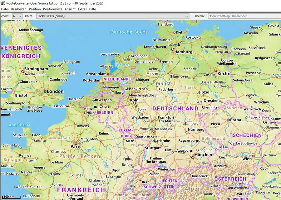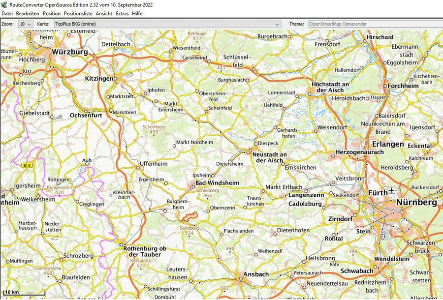 der Maus beliebig ändern kann. Ich verwendet der Übersichtlichkeit wegen bis etwa zur Zoom-Stufe 10 die Karte "TopPlus BKG" und dann "OpenStreetMap Default Map" Nachfolgend mal 2 Bilder der Zommstufen: |
