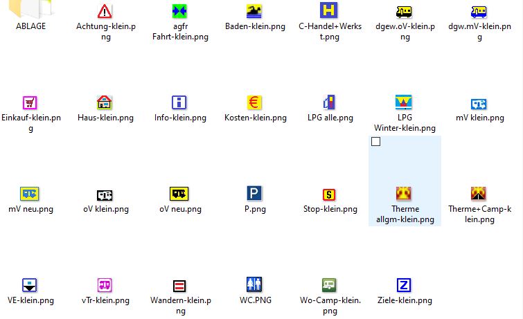 den Navigator einbinden diggertQt Programm zur Umwandlung der excel-Daten in *.mca-Datein + Dieses Programm (gibt es auch kostenlos im Internet) benötigt man, um aus den Datensätzen in den Excel-Tabellen eine *.mca-Datei zu erstellen, die dann ins DATA-Verzeichnis des Navigators kopiert werden muss. In diesem Verzeichnis liegen auch die Länder.mca des Navigators, die man sich heruntergeladen hat. Die eigenen POI.mca-Datein erhalten logischerweise den gleichen Namen wie die Tabellenblätter in der Excel-Datei. Dazu muss man nun wissen, wo dieser DATA-Ordner im Programm auf der Festpatte versteckt ist, denn die einzelnen Versionen haben mitunter einen etwas unterschiedlichen Pfad. Bei mir ist es so: Windows: Dieser PC > Windows(C:) > ProgrammData > Navigator > 18.2 > Data Android: Sdcard > Android > data > om.mapfactor.navigator > files > navigator > data Man kann also die *mca-Datein unverändert in Windows und Android verwenden. Ggf. muss man in der Android-App noch die Darstellung der POI-Größe anpassen, damit die eigenen POI nicht überwuchtig oder zu klein erscheinen. Wichtig: Man sollte immer alle *mca-Datein (Länder-Datein und eigene) extern irgendwo abspeichern. Weil, wenn der Navigator mal im Hintergrund ein Update macht auf eine neuere Version, kann es passieren, dass erst mal alle mca weg sind! So kann man alles schnell wieder in den Navigator hineinkopieren, ohne auch erst wieder die Länder.mca langwierig über das Internet herunter laden zu müssen. Der "diggertQt" hat einen entscheidenden Nachteil bei der Abspeicherung der erstellten *mca-Datein. Er speichert die Datein nämlich in einen eigenen "Import"-Ordner. Da habe ich bis her nur die nachfolgende Variante gefunden, die Datein in den richtigen Ordner im Navigator zu bekommen. Wer da eine günstigere Variante gefunden hat, dass man den Ausgabe-Ordner im diggertQt frei wählen könnte, der möge es mir bitte mitteilen (dettebrode@aol.com) Bis dahin benutze ich nachfolgendes Programm PureSync Professional Programm zur automatische Synchronisation der *.mca-Datein in den mf-Navigator Dieses Programm kostet 25 Euro. Man kann es aber so konfigurieren, dass es die *mca-Datein automatisch vom Import-Ordner in den Data-Ordner kopiert. Die Einstellung ist speicherbar und dann könnte man dieses Programm ja auch noch für andere Zwecke verwenden. Nun wird mancher denken, huch, ist das aber kompliziert und aufwendig. Ist es aber nicht, wenn man dann einigermaßen in der Materie steht und alles eingerichtet hat, ist das Eintragen neuer POI oder das Ändern vorhandener POI mit wenigen Klicks erledigt. Die Vorteile auf dem relativ großen Laptop-Navi-Bildschirm sind aber enorm: + sehen wo man schon mal war oder sehen, zu welchen interessanten Orten möchte man mal hinfahren, wenn man dort schon in der Nähe ist + sehen wo irgendwo irgendwelche Stellplätze sind und welche Ausstattung sie haben was sie Kosten u.ä., weil ich ja auch große Datensätze eingebunden habe, die ich im Internet gefunden habe. + schnelles Hinein- und Heraus-Zoomen für eine optimal Ansicht / Übersicht + sofort sehen, wo sich in der Nähe Ver- u. Entsorgungsstationen befinden + sehen, was kosten Sonder-Maut-Straßen im Gebirge oder welche Straßen und Pässe sind frei befahrbar, welche Steigungen sind zu erwarten usw. Das alles kann man sich mit der Zeit selbst erarbeiten. Alle POI-Piktogramme habe ich mir weitgehenst selbst erstellt, um z.B auch schon mit der Farbe (z.B. blau oder schwarz) dazustellen, was da ist oder nicht. Dazu habe ich eine Legende erarbeitet, die mir dann unter dem Piktogramm noch Genaueres sagt, z.B. zu den Kosten, oder ob Stromanschluss oder ein WC usw. vorhanden ist. Ich kann also mit einem neuen Pic, und dazu einem neuen Tab in der Excel-Datei schnell einen neuen Datensatz anlegen. Für verschiedene Synchronisatios-Aufgaben legt man einfach einen neuen Job und bei richtigen Einstellungen läuft dann alles immer automatisch ab. Wie das funktioniert, siehe weiter unten. Beide folgenden Bilder zeigen, welche Piktogramme u. Legende ich verwende: Diese Piktogramme werden verständlich ständig überarbeitet. |
