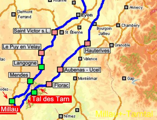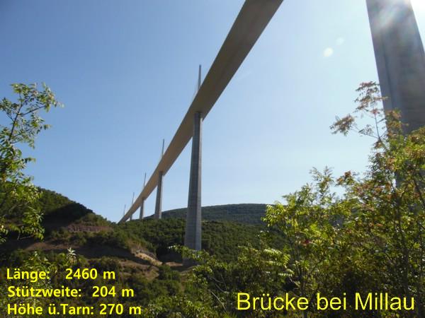 Autobahnbrücke von Millau sowie die Fahrt durch die ca. 40 km-lange